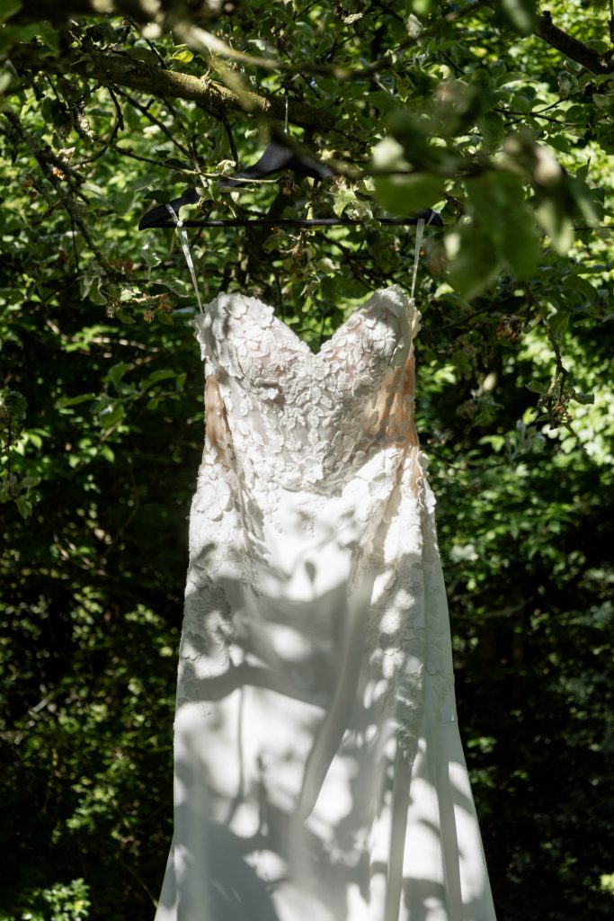 Terwijl buiten alles werd klaargezet, maakte Noa zich in alle rust klaar in het achterhuis. Een intiem moment, vol kleine details en zachte emoties. De jurk hing klaar, sieraden werden zorgvuldig omgedaan en het daglicht viel prachtig naar binnen. Die fijne mix van rust, spanning en voorpret maakte deze voorbereidingen extra bijzonder.